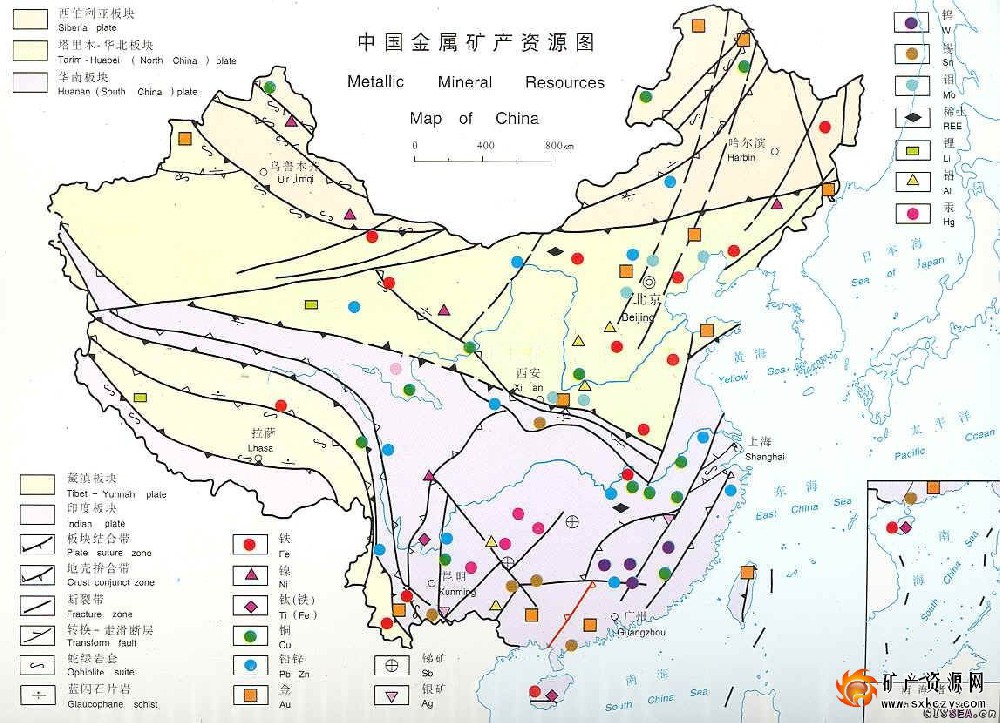 稀土、稀有金屬:主要分布在內蒙古自治區(白云鄂博、801)、山東省(微山)、江西省(贛南、宜春)、廣東省(粵北)、新疆維吾爾自治區(富蘊)等地。