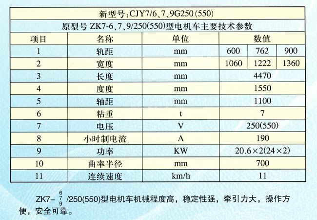 7噸窄軌架線式工礦電機車車參數(shù)
