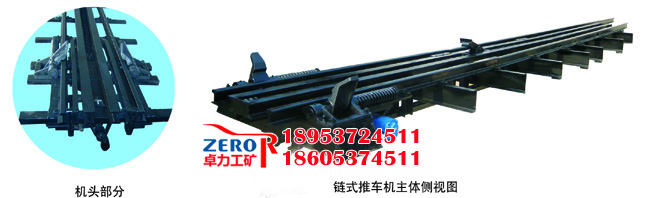 根據機械結構的不同,分為鏈式推車機銷齒式推車機、繩式推車機(含軌外繩式推車機)三種。